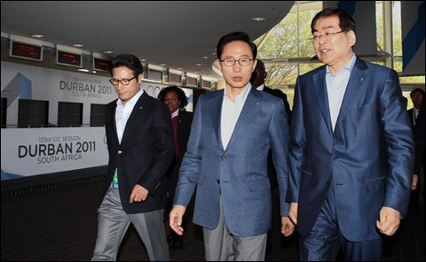 ▲ 이명박 대통령 해외순방에 함께 하고 있는 조양호 한진그룹회장 출처:연합뉴스