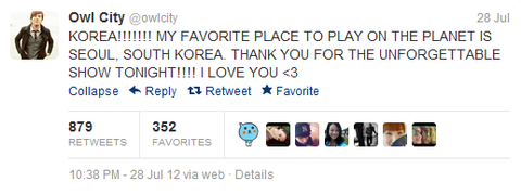 한국 팬들의 무한 응원과 떼창으로 감동을 받아 트위터에