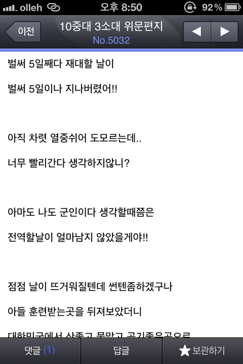 군인에게 힘을주고 싶다 추천!