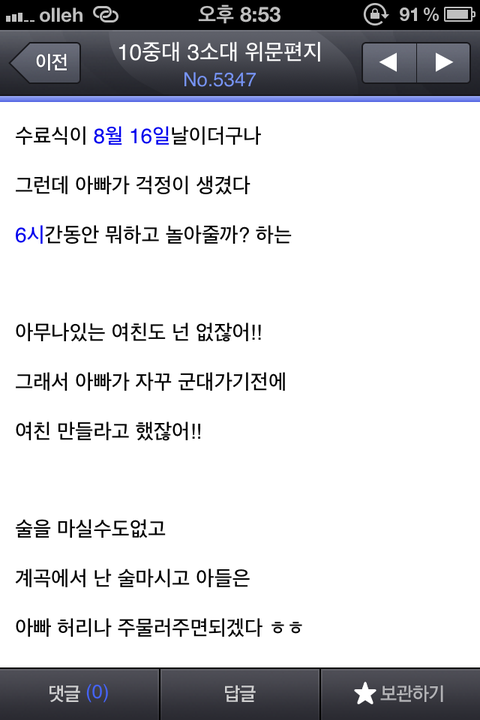 떠나버리고 인터넷편지를 쓰면서 군용어에 하나씩 익숙해진던 제가 친구 아버지의 인터넷 편지를 보면서