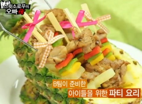 B팀은 새콤달콤한 파인애플을 이용한 닭꼬치와 컵 탕수육을 만들어