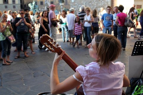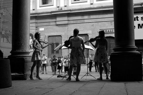 피렌체 우피치 미술관 밖에서 바이올린 연주를 하는 세 소녀!