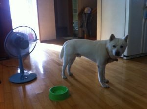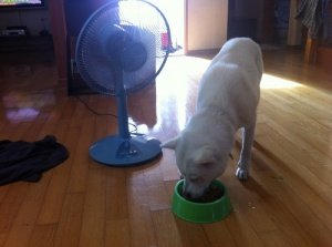 특별히 밥먹는데 더울까봐 밥먹는데 옆에 선풍기도 틀어줌.