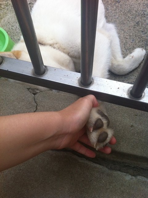 철창앞에서 두비야 손줘! 이랬더니 철창밑으로 발을 수줍게 내밀어 주었음.
