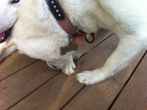 두비가 산책갔다오면서 나무에 긁혀서 다리에 상처가 좀 났는데