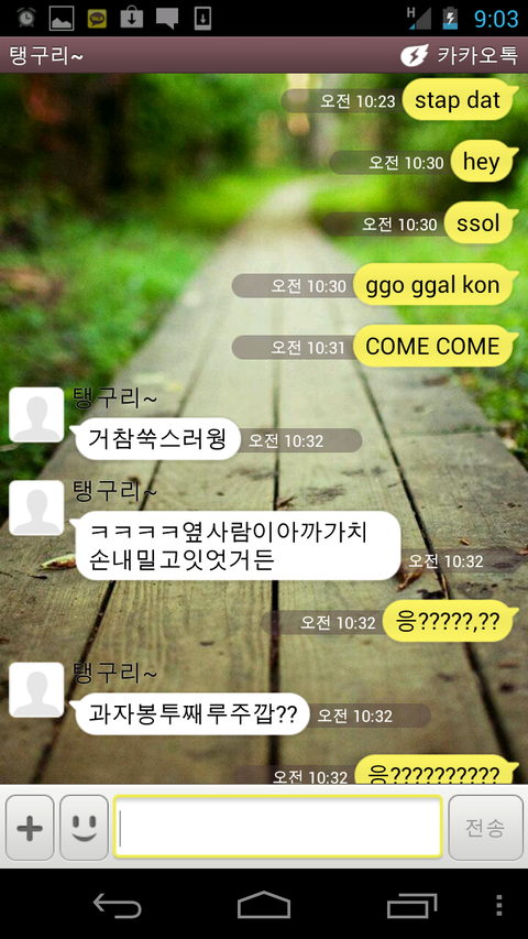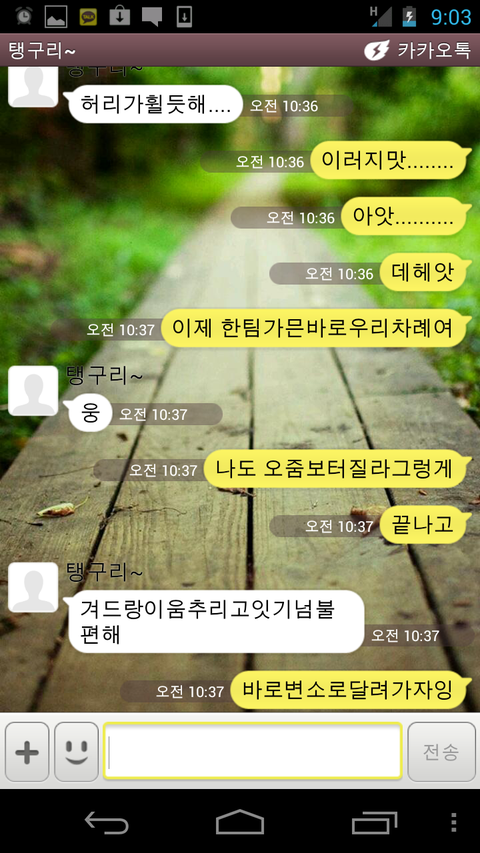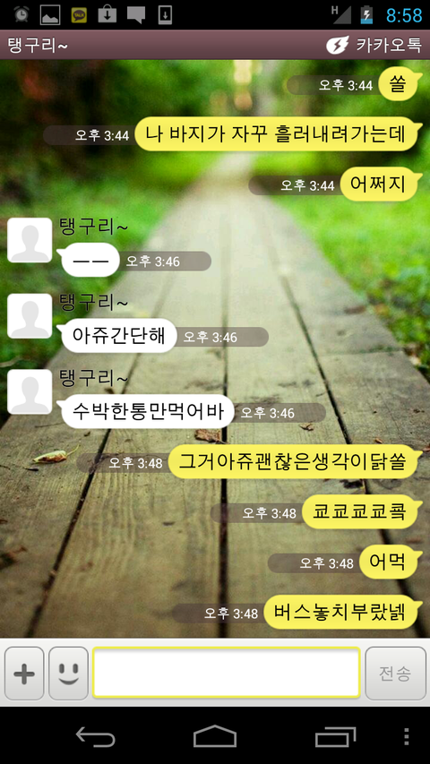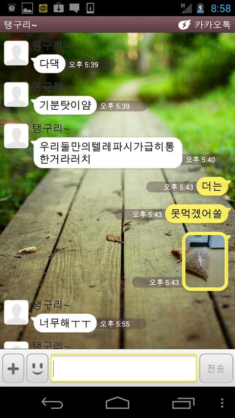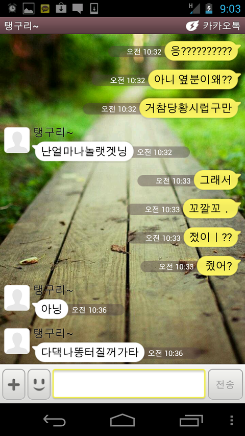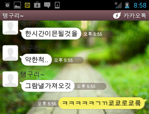 그럼 카톡대화 몇가지를 공개하겠슴돠!