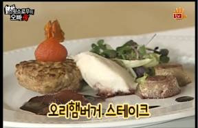 우선 여미애&박지원팀의 메뉴는 오리 햄버거 스테이크였는데요.