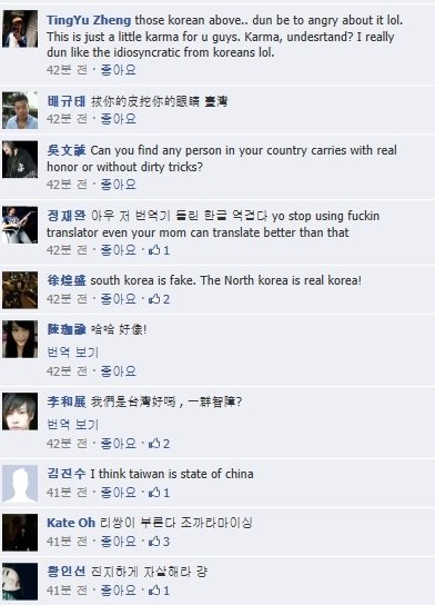 댓글에서 대만사람이랑 한국사람이랑 엄청나게 싸우네요