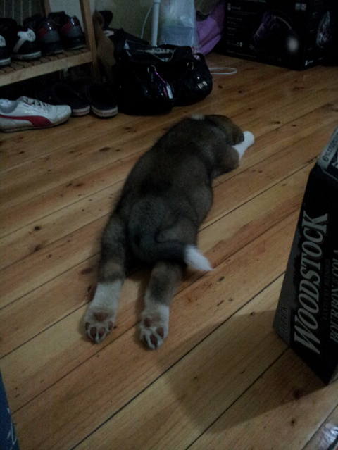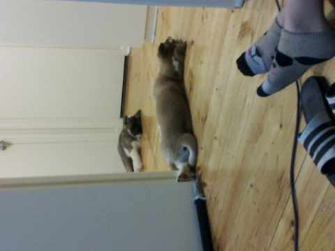 마야가 온지 얼마 안되어서 ...꼬리가 쭉 쳐져있네요..