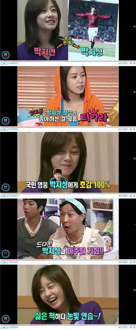 그걸 들은 지연은 박지성 선수에 대해 물어보고 소연이 국민영웅인데다가 호감100%라고 대답함.