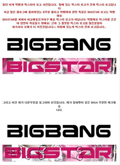 그리고 빅뱅팬이라면서....로고 똑같다고 하시는분들...빅뱅 earth체 구분 못하십니까??? 빅뱅 로고도 구분 못합니까??? 같은체라고 하지 마십시오... 그냥 비슷하다고 하십시오....봤을때 비슷한것은 사실이니...