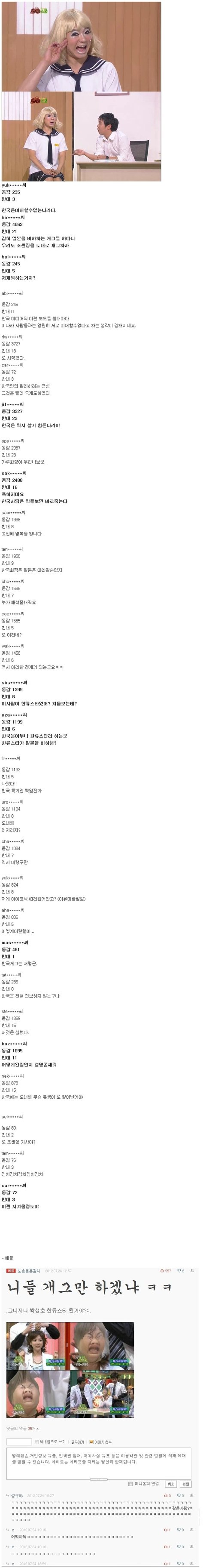 박성호가 일본깔라고 저런 의도로 개그짠건 아닌데 왜 그따위식으로 받아들이는거지? 왜 그런거야 ? 쪽바리새끼들아 일본인이라고 한적없는데 니들인거 찔려서 그런반응 보이는거야 ? 도대체 뭐야 알려줘 쪽바리들아 ^ ^