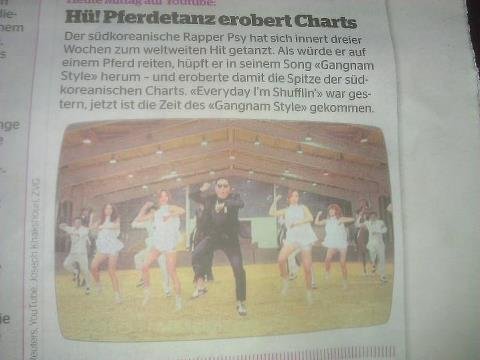 스위스 신문에 한국 가수로는 처음으로 싸이님의 "강남스타일"이 났어요!!!!