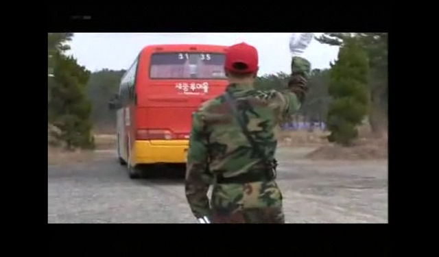 울먹이며 경례를 하며 버스에 탑승. "야! 끝났다!"