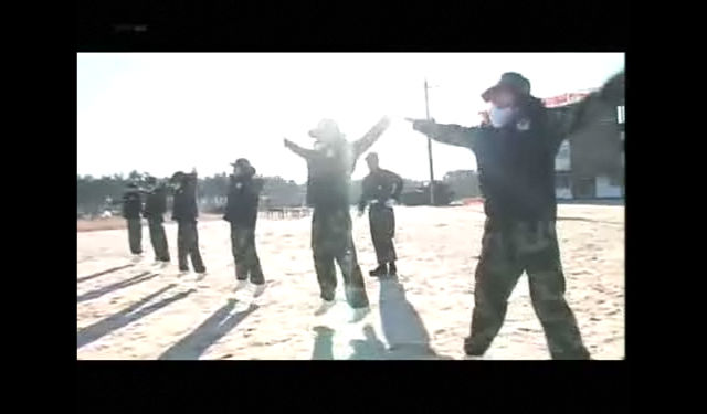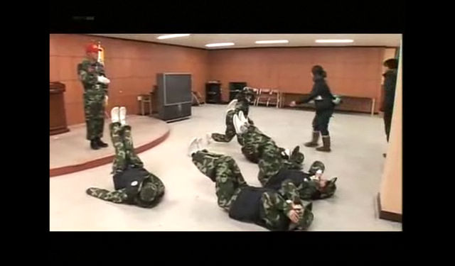 팔벌려뛰기가 별로 재미없어 보였던지 다른 자세를 친절하게 가르쳐주는 교관님.