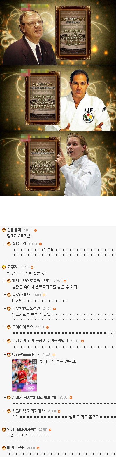 뜬금없지만 7시 15분에 태권도 선수 응원합시다 ㅡㅡㅡㅡㅡㅡㅡㅡㅡㅡㅡㅡㅡㅡㅡㅡ ㅋㅋㅋㅋㅋㅋ어머 베플..... 이영광을 이대훈 선수께 꼭 예선 통과하세요!!! 그리고 오후 11시 30분에 남자 탁구 단체 결승전 있는데 응원 합시다 대한민국 화이팅! 남은 날 까지 오심없기를!