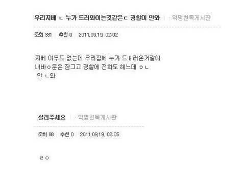 막 익친에 살려달라고 글까지썻다