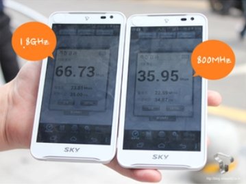 왼쪽이 멀티캐리어 적용한 거고, 오른쪽이 그냥 LTE 속도라는데.