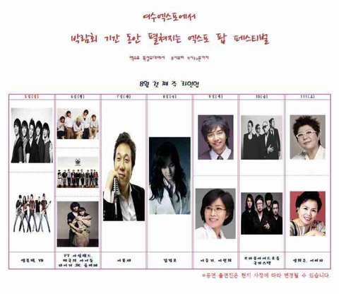 여수엑스포 “엑스포 팝 페스티벌” 8월 첫째 주 라인업