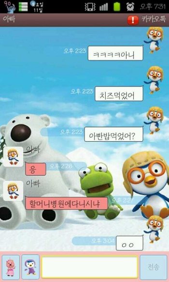 그리고 저 카톡을 끝내고 몇분안가서 아빠하고 통화했어요.
