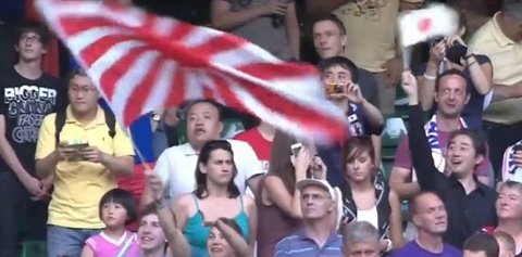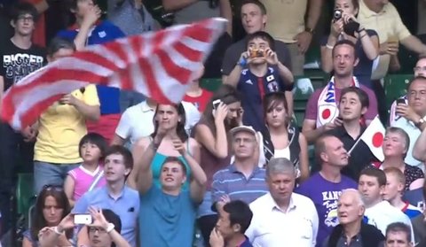 경기장 안에 욱일승전기가 반입된 사례는 셀수없이 많지만 이번 한일 경기서 반입된 욱일승천기 사진