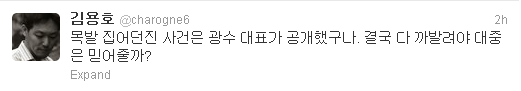 가장 최근에 올라온 김용호기자 트윗...분명 이분 뭔가 알고는 있군요.