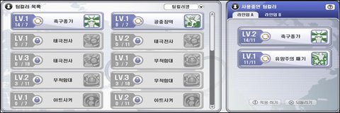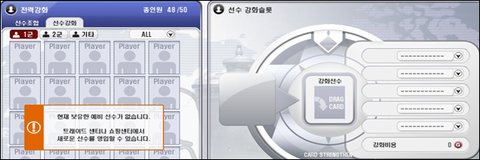 동일한 선수를 획득하였을 때 한 선수를 소모하여 다른선수의 능력치를 더욱 추가 시켜줄 수 있는 시스템으로
