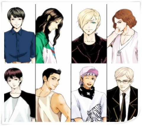 (키스락의 친구들 모습, 훗날 키스락 밴드가 되어 최고의 뮤지션으로 성장한다. 왼쪽 위부터 시계 방향으로 보컬 눈범, 리드기타 네들, 베이스 노밀, DJ 케힐, 드럼 포호, 비보잉 석곰, 리듬기타 행키, 건반 리띠)