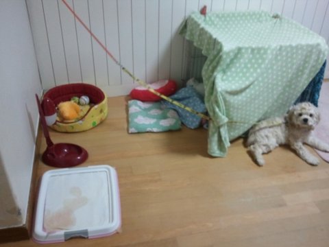 결국 방에 있던 매트릭스를 마루로 가지고 나와 멍뭉이 철장옆에 설치했음. ㅋㅋ