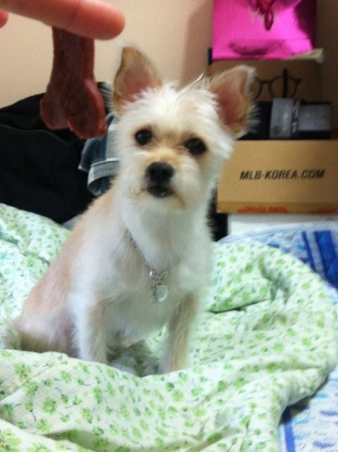 말티즈와 요크셔 잡종 같은데 어릴땐 이뻐서 데리고 왔다가 크니깐 못생겨서 그런거 같다고 했음.