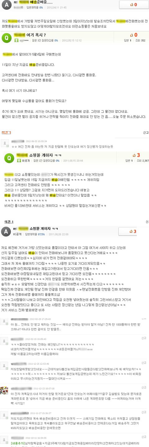 의견5-저도지금2주짼데 계속배송준비중이고 진짜 미쳣지 ㅡㅡ 쓰레기임 전화해도 목소리 귀척쩔고 상담원들 말개씹어대고 욕해도씹고 계속불러도 씹고 허구언날 배송준비중이고 언제온다는거임 배송추적 그딴거 바라지도않고 배송준비중만 없애줫으면]