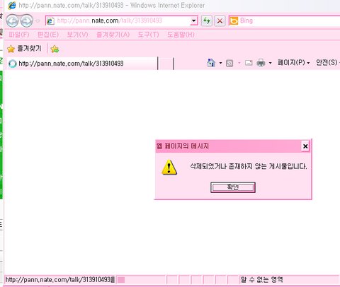 이렇게 삭제된게시물이라고 경고창이 뜨는게아니겟음.................ㅠㅠ....