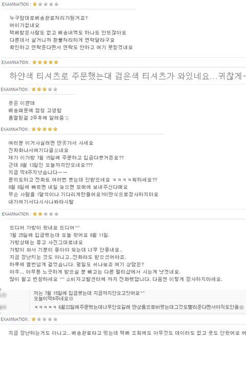이렇게 상품후기에 갖가지 욕들이 적혀 있는가하면