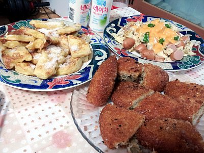 형한테 들었는데 식빵을 완전 작게 다잘라서 계란이랑 야채들 버섯이랑 반죽을해서