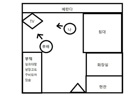 [대략 이런 구조에서 화살표 모양으로 티비를 보면서 둘이 앉아있었슴ㅋ 발로그래서 ㅈㅅ