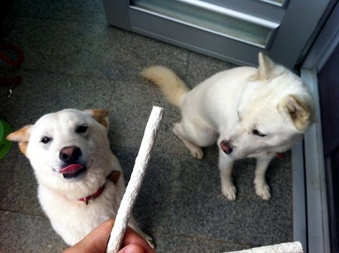 개님들의 미녀의 시녀인 난, 우리애기들이 좋아하는 개껌간식을 주기로함.