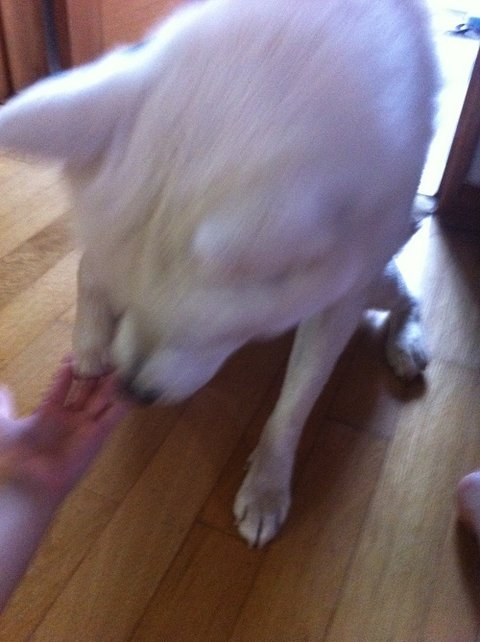 어여 손을 주고 이여자에게서 간식을 받아내고싶은 가비의 급한마음이 사진에 드러남.