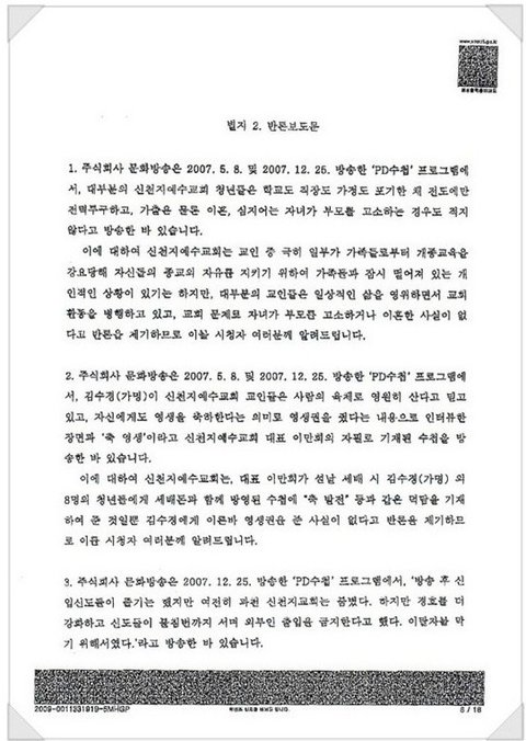 신천지 pd수첩을 방영했던 mbc는 법정에서 잘못을 인정하고