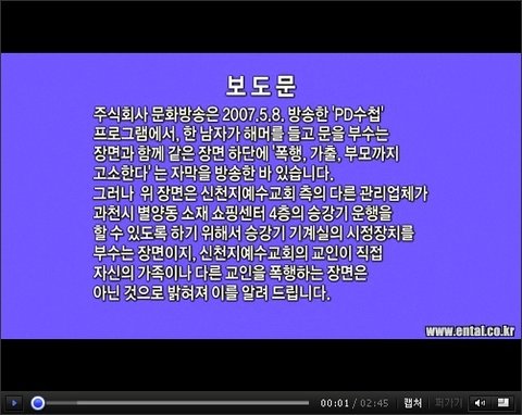 자신들이 잘못을 사과하기위해 신천지 pd수첩방송분의 잘못된 방송부분에 대하여 보도문을 낸적이 있습니다.