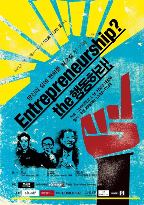 ‘Entrepreneurship? The 행동하라’는 대학생들로 이루어진 두 학회, 고려대학교의 Future Entrepreneurs’ Society(이하 FES)와 미국 Babson College의 Tie-Off에서 주최하는 강연회입니다. FES는 ‘세상에 긍정적 가치를 창출하는 기업가를 배양’하는 비전을, Tie-Off는 ‘서로의 꿈과 비전뿐만 아니라 역량 및 지식 공유를 통하여 더 큰 사회적 가치 창출을 도모’하는 비전을 가지고 있습니다. 이와 마찬가지로 ‘Entrepreneurship? The 행동하라’는 두 학회의 비전에 맞춰 우리 사회에 다양한 가치를 제공하는 Entrepreneur들을 연사로 초청해 차세대 Entrepreneur들을 배양하는 역할을 하고자 합니다.