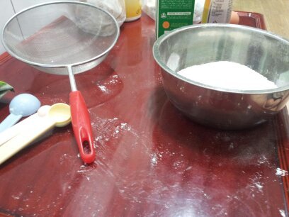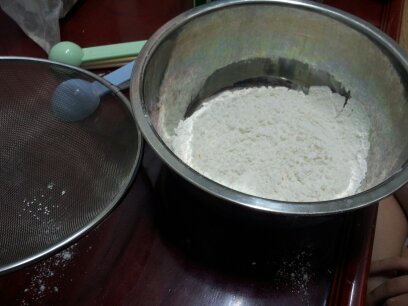 밀가루를 체에다가 곱디곱게 걸러주고 .....알개이들이 많아보이는건 기분탓일꺼임 (이때 쏨이가 체로장난치다가 양말다배렸음ㅋㅋ)