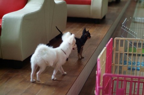 휴가철이라 애견카페에는 맡겨진 아이들이 다수였음