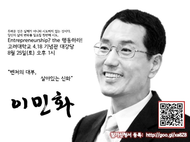 Entrepreneurship은 행동하여 만드는 가치입니다. 이번 ‘The 행동하라’ 강연회는 많은 이의 Entrepreneurship에 대한 올바른 이해를 돕고, 자신만의 비전으로, 남이 가지 않는 자기만의 새로운 길을, 실패하더라도 꿋꿋이 가는 사람이 되자는 메시지를 전달할 것입니다.