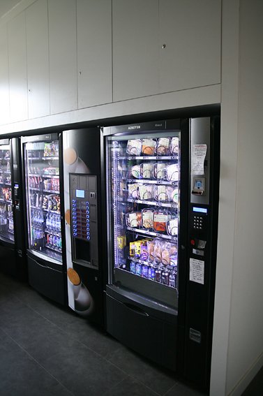 여기 자판기에 먹을 것이 참 많았어요.