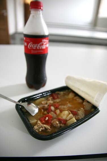 그리고 닭고기 스프와 콜라를 먹었는데
