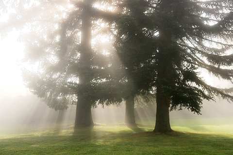 해가 높이 떴는데 나무들이 많아서