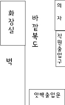 내가 있는 곳이 앗백출입문이었고 화장실쪽이 훤히 보임