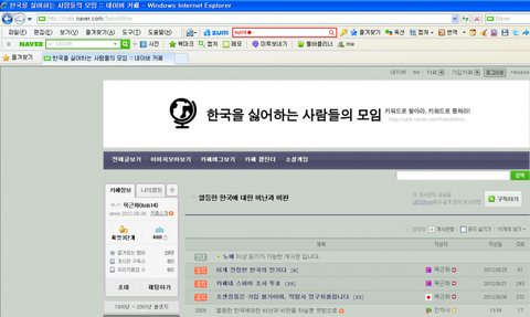 한실모 (한국을 싫어하는 모임) 이라는 카페가 있다고, 진짜 어이가 없다는 식의 글이 올라와 있는거임.