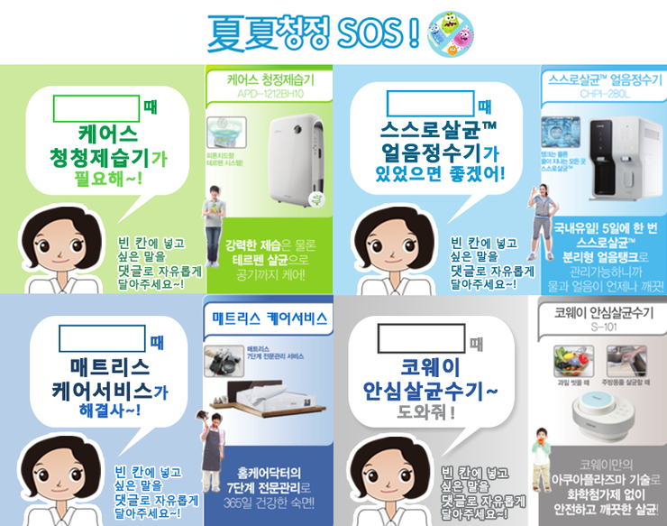 매일매일 새로운 웅진코웨이 위생제품들과 함께 ‘하하청정 SOS! 이벤트’가 진행되고 있습니다~