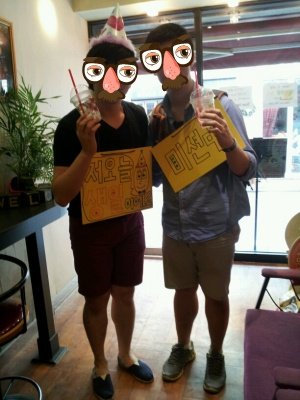 조기에 써있는 고깔모자와 안경중에 우리는 고깔밖에 준비하지못했음